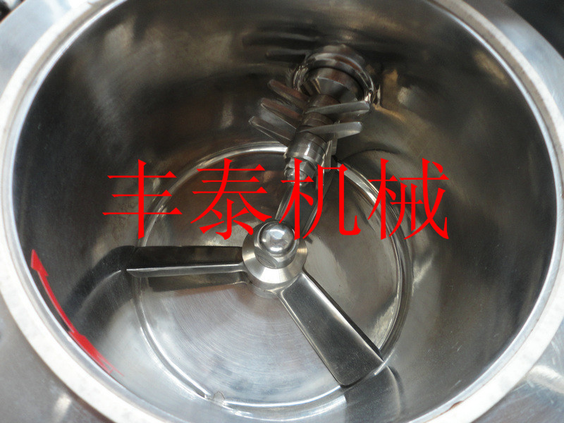 1、 本機(jī)主要由攪拌系統(tǒng)、切割系統(tǒng)、機(jī)架、混合筒及電氣控制箱等組成。攪拌系統(tǒng)由電機(jī)、軸承座、切割刀組成,攪拌及切割系統(tǒng)的傳動(dòng)軸均有可靠的密封裝置,防止原料進(jìn)入軸承及潤(rùn)滑油污染原料。