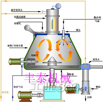 5) 混和、潤(rùn)濕、制粒三道工序連續(xù)進(jìn)行,可避免人手接觸而污染物料。