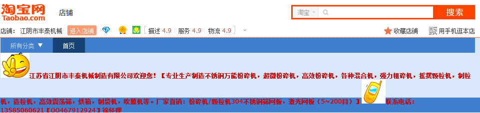 淘寶網(wǎng)店鋪名(江陰市豐泰機(jī)械),已經(jīng)達(dá)到鉆石賣家。